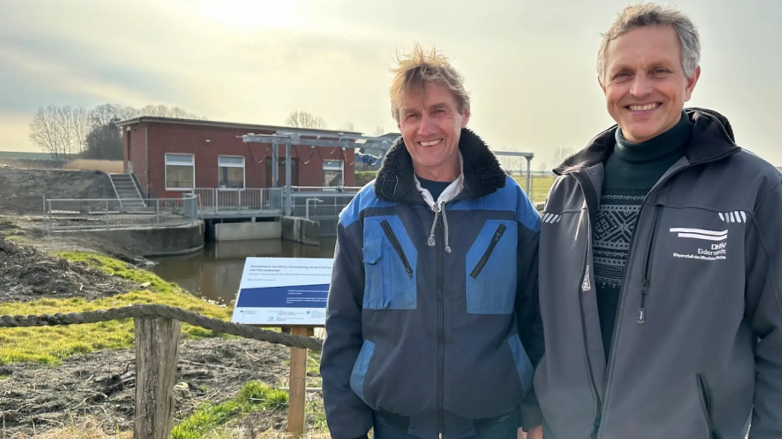 Freuen sich, dass die Fische sicher durchs Schöpfwerk kommen: Oberdeichgraf Jan Rabeler (r.) und Schöpfwerkswärter Helge Michaelsen.